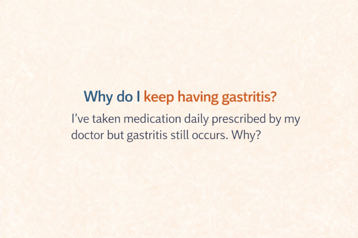 Why do I keep having gastritis? I’ve taken medication daily prescribed by my doctor but gastritis still occurs. Why?